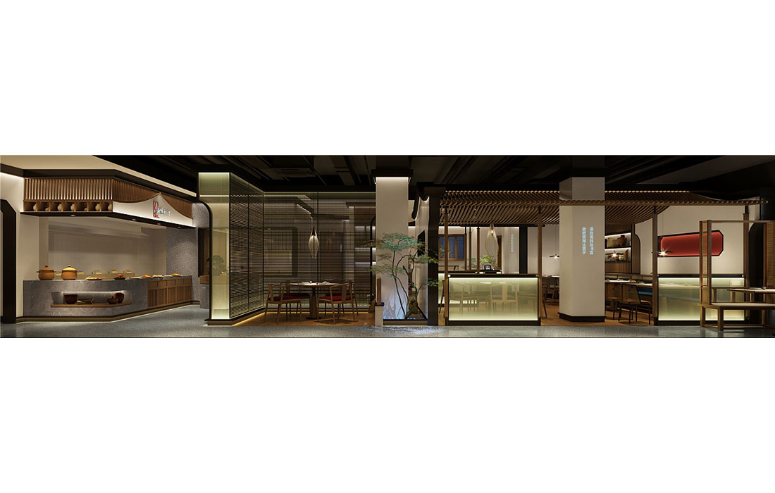 設(shè)計理念: ??濟(jì)南餐飲裝修效果。其裝修效果圖體現(xiàn)了濃郁的中式風(fēng)情,采用木質(zhì)材料和精致雕花裝飾,營造出溫馨典雅的就餐環(huán)境。整體色調(diào)以暖色為主,搭配古典家具和藝術(shù)品,讓顧客在品嘗美食的同時,也能感受到中華文化的博大精深。