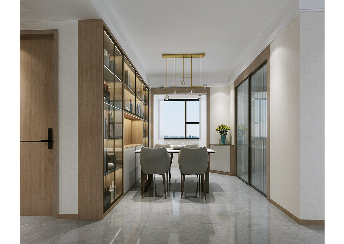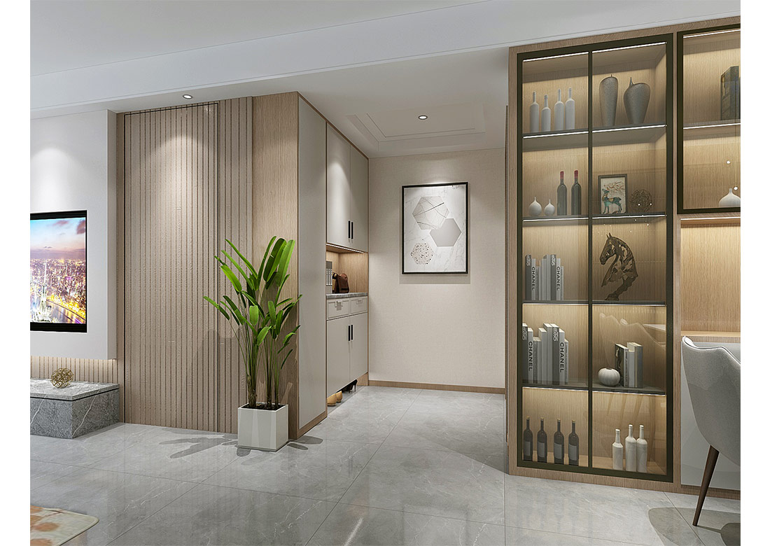 ??濟(jì)南阿達(dá)森裝飾為萬象東方設(shè)計的現(xiàn)代簡約風(fēng)裝修,以淺米色系打底,整面定制柜藏起雜亂的隱形收納巧思,正契合濟(jì)南寫字樓辦公室裝修里的高效空間利用邏輯;懸浮式電視柜的輕盈感