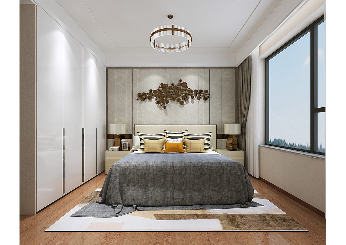 ??濟(jì)南阿達(dá)森裝飾為穎秀華府打造的現(xiàn)代極簡輕奢風(fēng)。淺米色大尺寸沙發(fā)柔化空間,搭配焦糖棕單人椅,用撞色拉出層次感;黑白紋理茶幾與同質(zhì)感背景墻呼應(yīng),高級又利落。深色木飾面 +