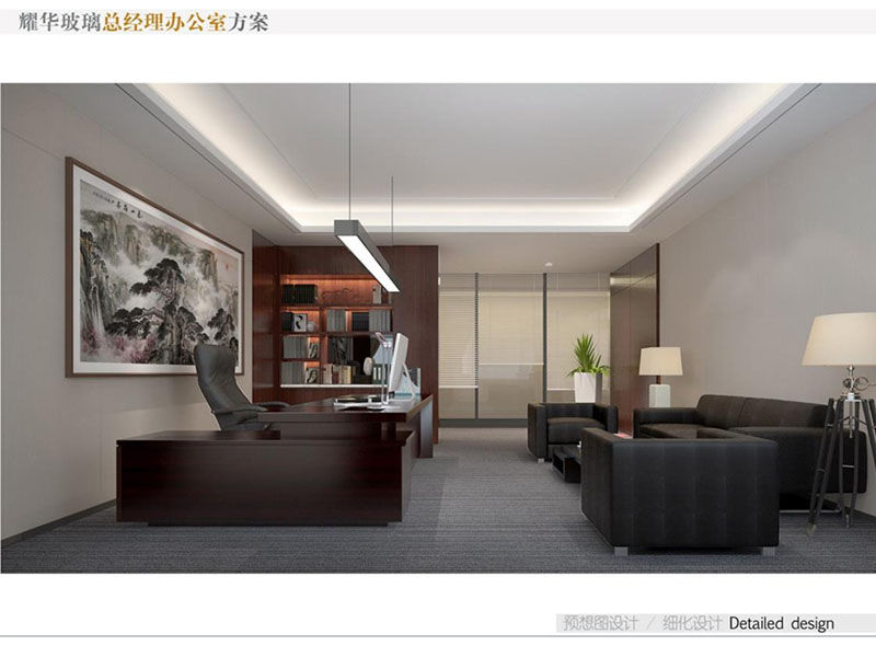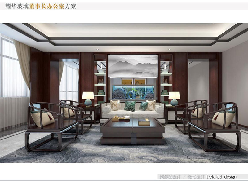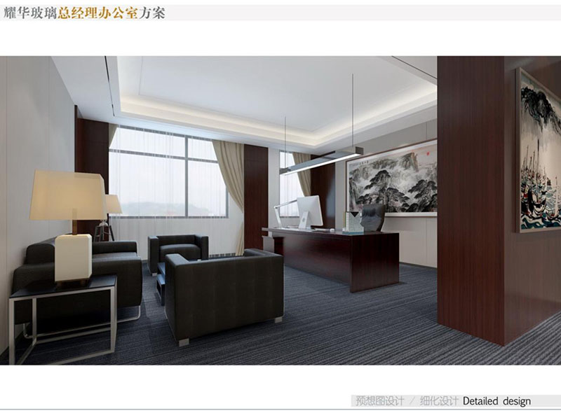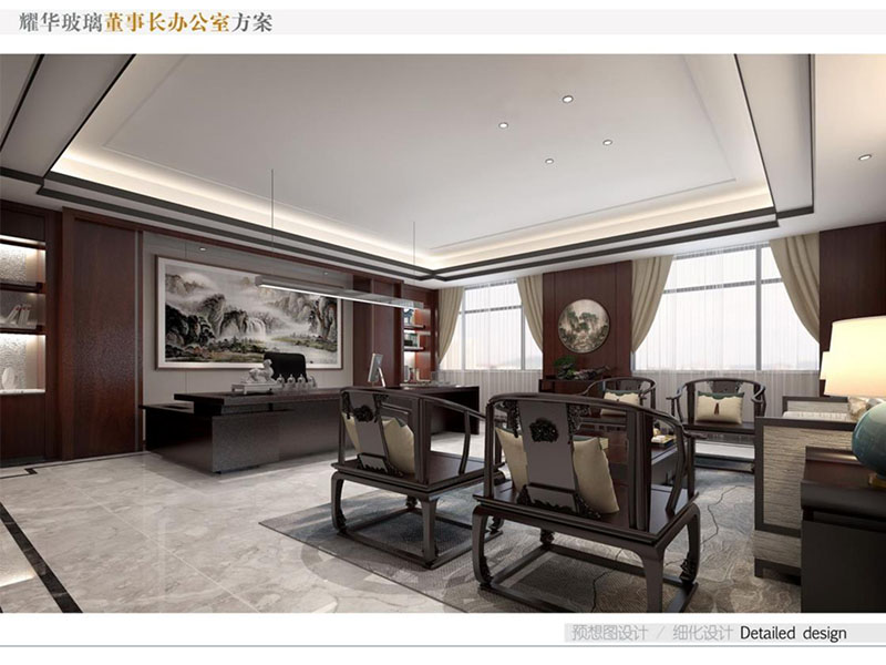 耀華玻璃董事長辦公室裝修效果圖彰顯出了企業(yè)的高端形象。董事長辦公室設(shè)計(jì)采用了中式風(fēng)格,運(yùn)用高質(zhì)量的木材、優(yōu)質(zhì)玻璃等,給辦公室營造出沉穩(wěn)的氣氛。空間布局合理,既有寬敞的辦公區(qū),也有舒適的接待室和休息區(qū)。同時(shí),辦公室內(nèi)也會(huì)融入耀華玻璃的特色元素,如玻璃藝術(shù)品或公司標(biāo)志,體現(xiàn)企業(yè)品牌和創(chuàng)新精神。