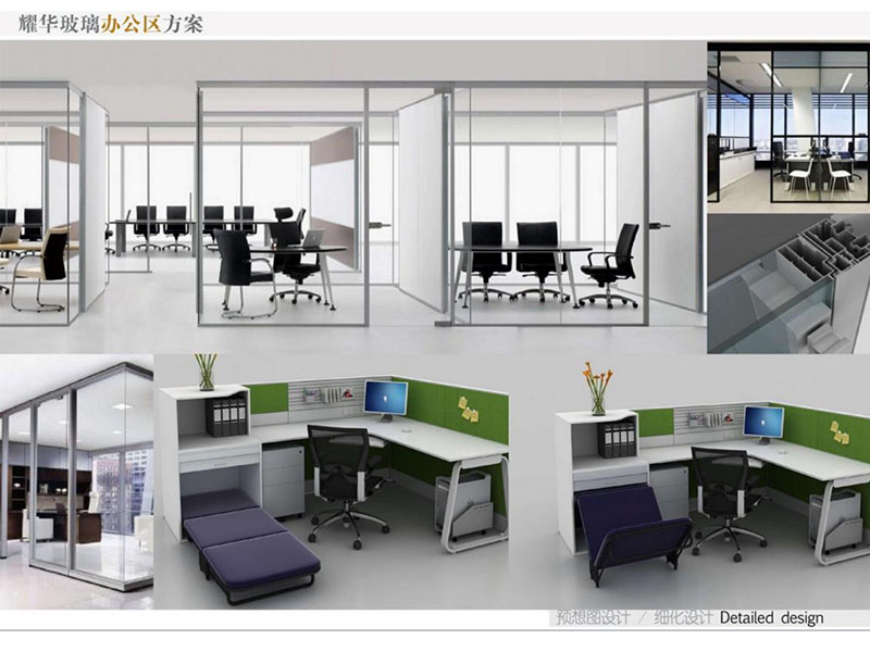 耀華玻璃辦公區(qū)裝修效果注重體現(xiàn)了現(xiàn)代與實(shí)用性的結(jié)合。辦公空間寬敞明亮,采用高品質(zhì)材料打造,使用耀華玻璃作為隔斷墻提升了整體美觀度,而且采用落地窗可以增強(qiáng)自然采光效果。會(huì)議室空間足夠大,利用了耀華玻璃進(jìn)行隔斷,從而達(dá)到了隔音效果好。營(yíng)造出高效、舒適的辦公環(huán)境。