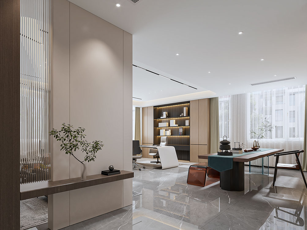 博思達辦公區(qū)裝修效果以 “高效協(xié)作 + 現(xiàn)代簡約” 為核心,主色調(diào)選用淺灰、原木色與白色,營造清爽通透且兼具活力的辦公氛圍??臻g布局上,采用開放工位與獨立會議室結(jié)合的設(shè)計,開放區(qū)用低矮隔斷劃分區(qū)域,方便員工即時溝通,每張工位配備多功能收納柜與可調(diào)節(jié)臺燈;獨立會議室按需求分小型洽談室與大型會議空間,均配備高清投影、白板與隔音棉,滿足不同協(xié)作場景;同時融入實用細節(jié),茶水間設(shè)長條操作臺與儲物柜,墻面點綴簡約裝飾畫與綠植,休閑角擺放舒適沙發(fā)與小茶幾,供員工短暫放松;整體空間無冗余設(shè)計,既保證辦公效率,又通過原木元素與軟裝搭配傳遞溫馨感,契合現(xiàn)代辦公對功能性與舒適度的雙重需求。